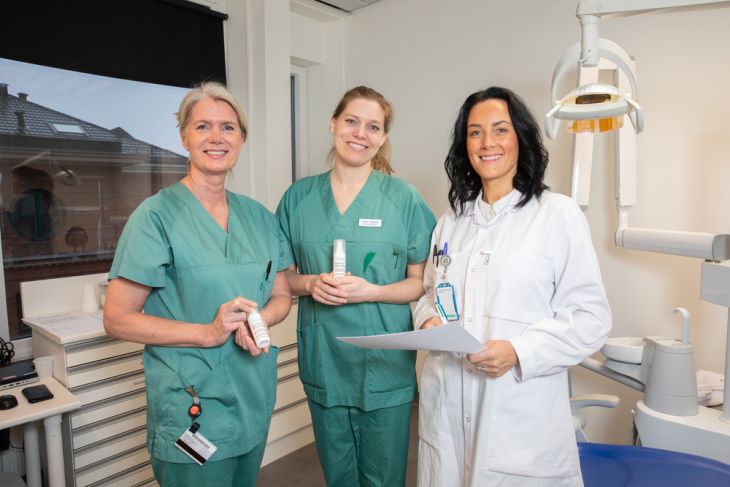 At the Research Clinic, there is hectic activity. Recently, a clinical trial of the product Liposal started, investigating whether it can relieve dry mouth. The pilot study conducted by Janicke Liaaen Jensen and Julie Frigaard aims to test the product on 20 patients who have challenges with dry mouth.