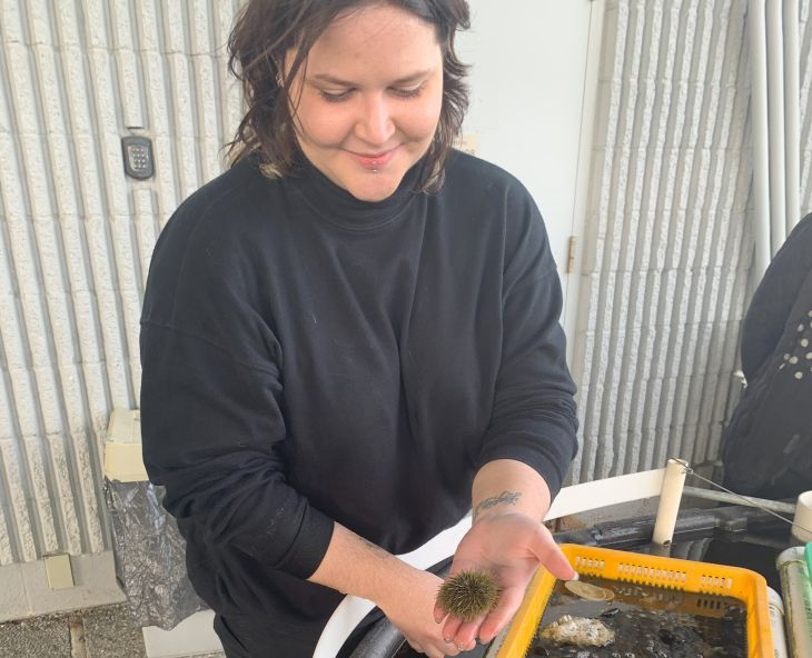 McLaughlin’s work includes developing the feeding protocol for urchins. She feeds the urchins to see how much of the toxin is consumed to incur a sample with detectable toxins and how long after they’ve consumed toxin-positive material it takes for them to purge the toxin and test negative. This is important information for supporting food safety, security and economic industry.