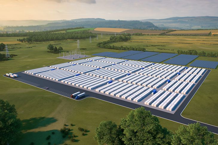 Form Energy’s battery modules are approximately the size of a washer-and-dryer unit. They are stacked in 40-foot containers, and several containers are electrically connected with power conversion systems to build storage plants that can cover several acres.